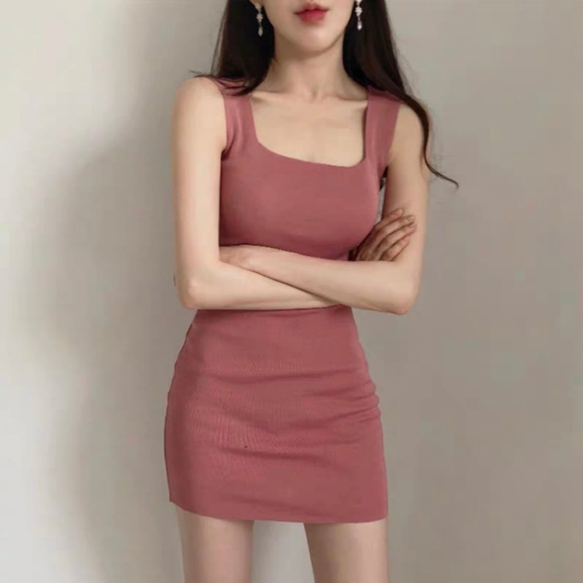 ぴったり ベスト ミニスカート スリム ロング丈 ノースリーブ ワンピース レディース 韓国ファッション